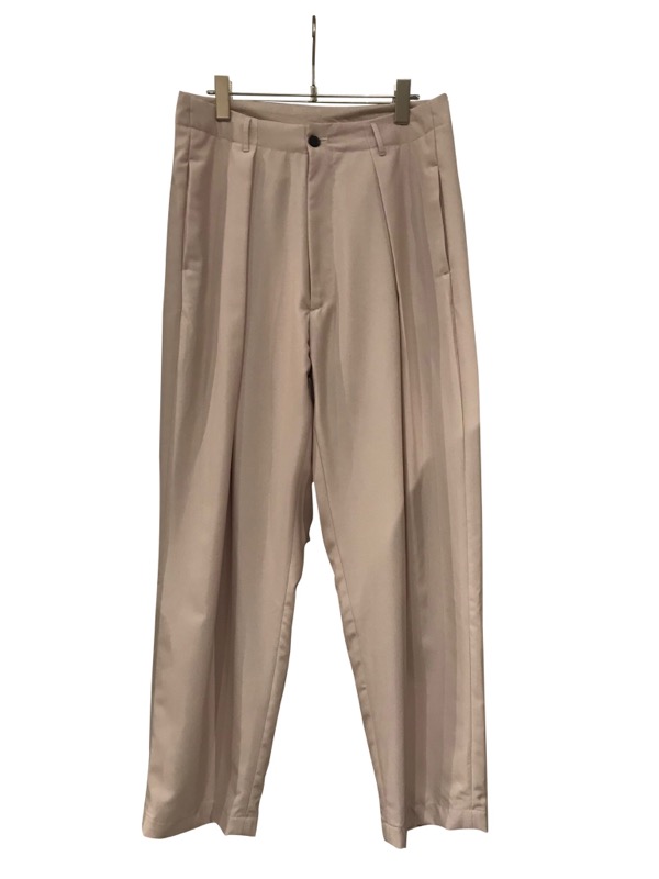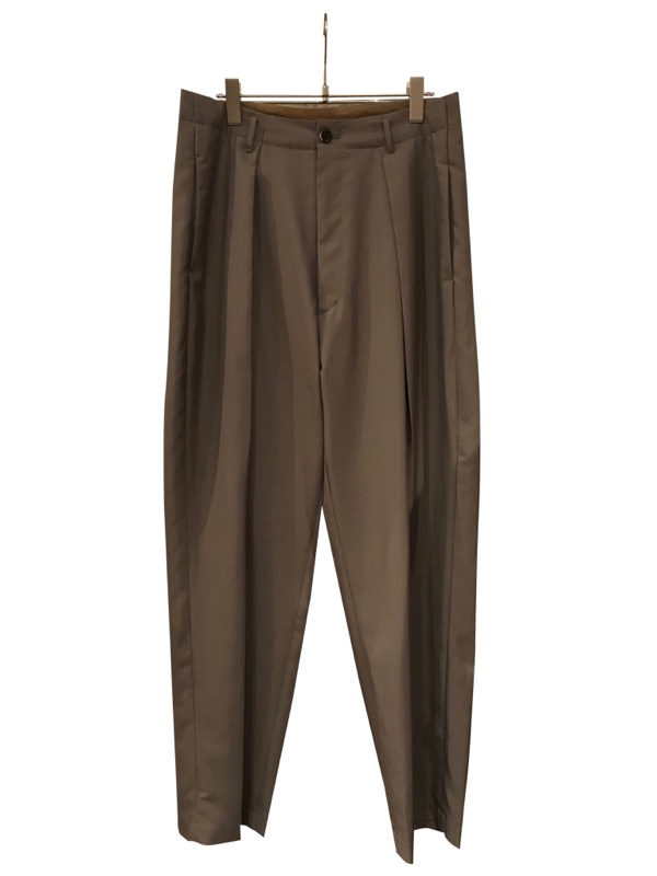 分量をたっぷりとったタックから、裾に掛け鋭く絞った独自のパターンが特徴の新型トラウザー。