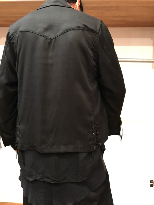 ウールなのに強いハリ、コシを出す為に特殊加工を施した生地を使用。ハリのある生地を使う事で、独自のシルエットを誇張したデザイン。