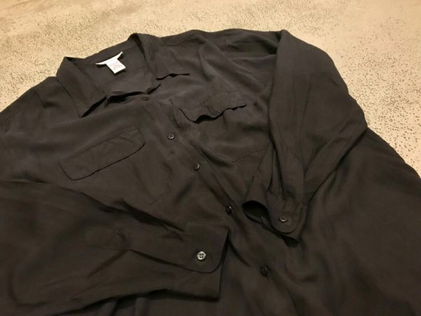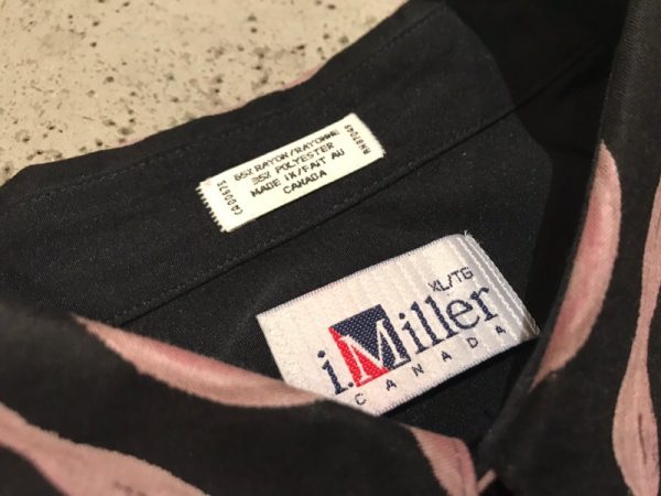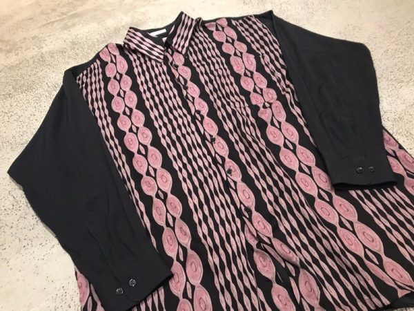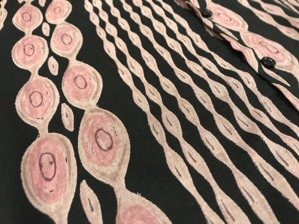 ボディと襟部分が、ハンドペイントの様な総柄。